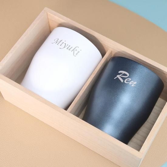 大切な方のお名前を彫刻した二種のステンレスタンブラー(ゴールド、ネイビー)をお酒と(別途購入)セットで販売させていただきます。タンブラーは、お酒が飲み終わったあとでも長くじっくりご利用いたけますので名入れアイテムとして大人気。大変おすすめなプレゼントセットとなっております。