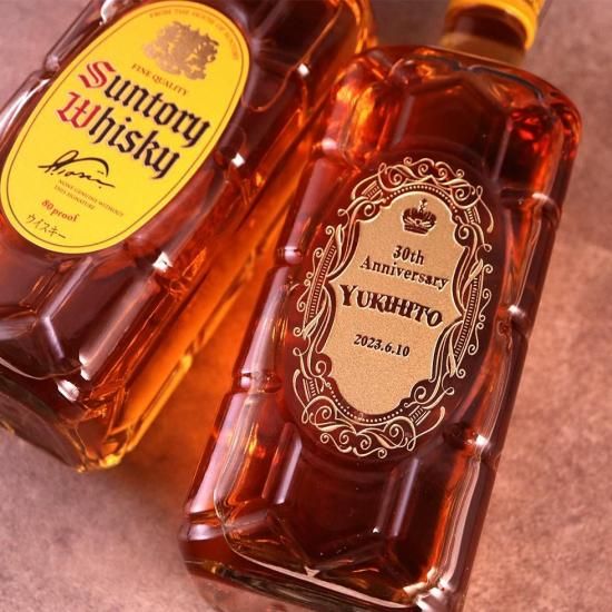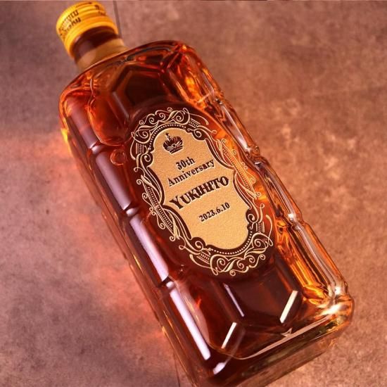 c角瓶の「瓶」は薩摩切子にヒントを得た亀甲模様が特徴です。実は角瓶のラベルに「角瓶」の文字はありません。その形、その特徴から角瓶という名前が定着したもので名前表記自体はございません。彫刻自体は中央に、角瓶の形を生かした形での彫刻となります。お写真で御分かり頂けると思いますが、角瓶の亀甲模様が生かされた大変素敵な彫刻に仕上がっております。