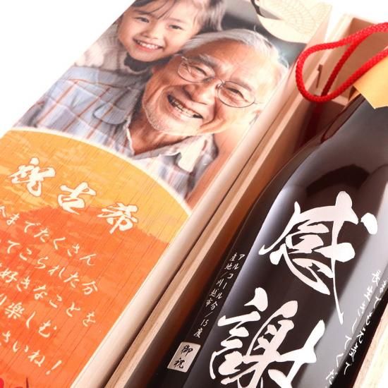 ★オススメ 長寿のお祝いにお酒の彫刻とお写真付きの木箱